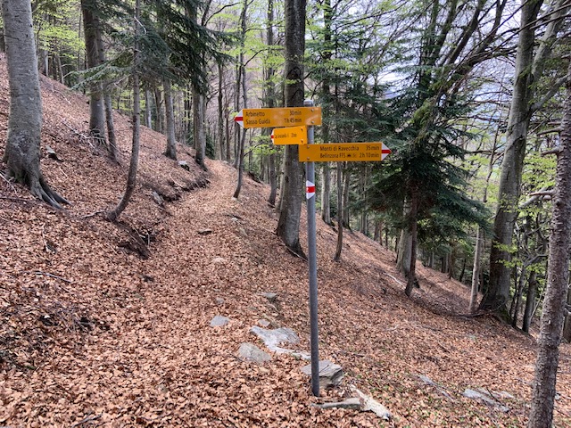 Da Curzùtt si torna a Sementina (o a Monte Carasso) seguendo i classici cartelli gialli. Attenzione alle gambe, la discesa è piuttosto ripida!